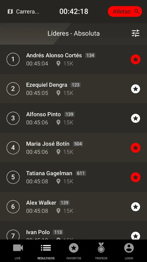 - Seguimiento de atletas favoritos